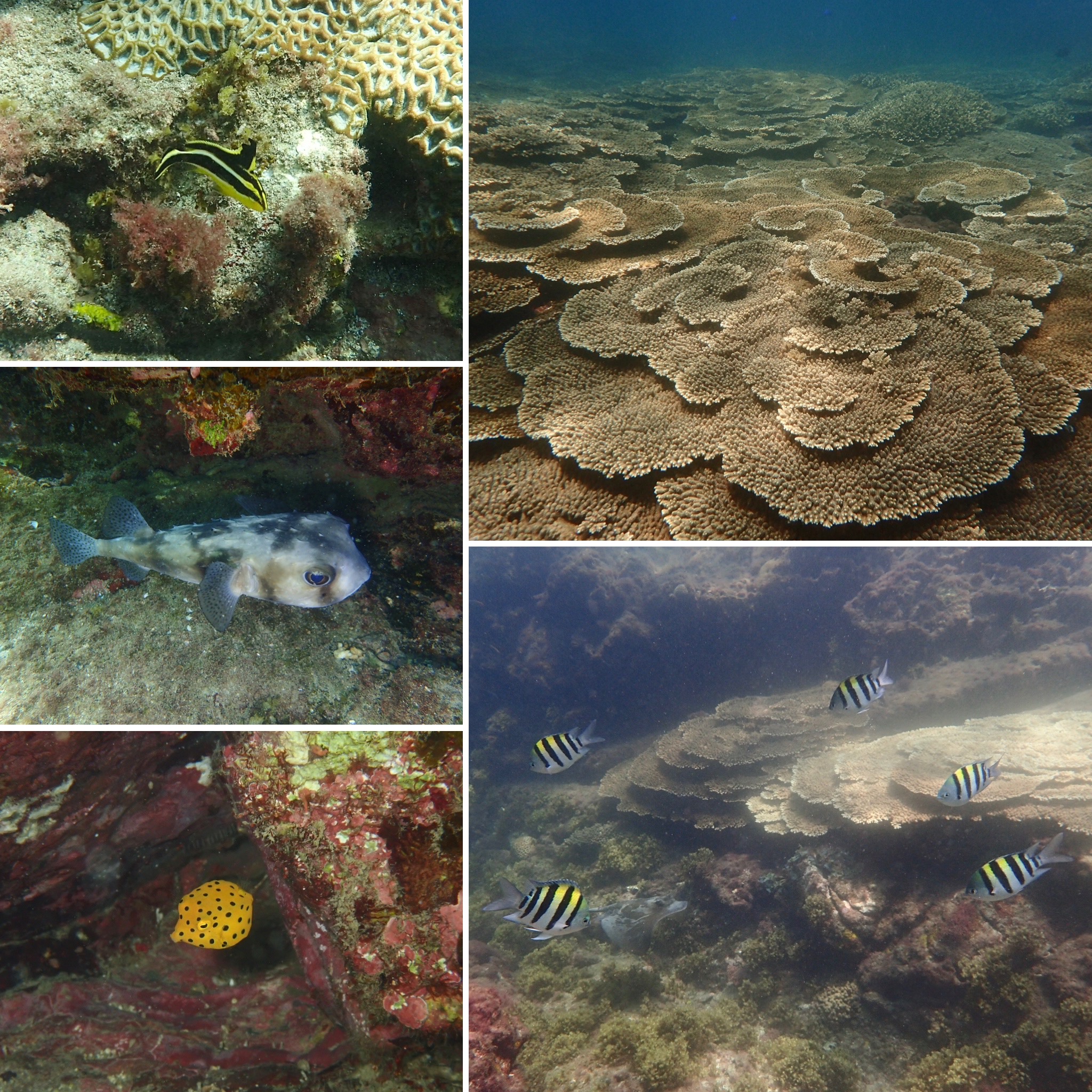 水温が低いので、2ダイブ目はビーチダイブへ変更!浅いところは透明度も良く温かかったです。幼魚も見られています。ミナミハコフグ幼魚やコロダイ幼魚など。サンゴの群生もキレイだったなー♬