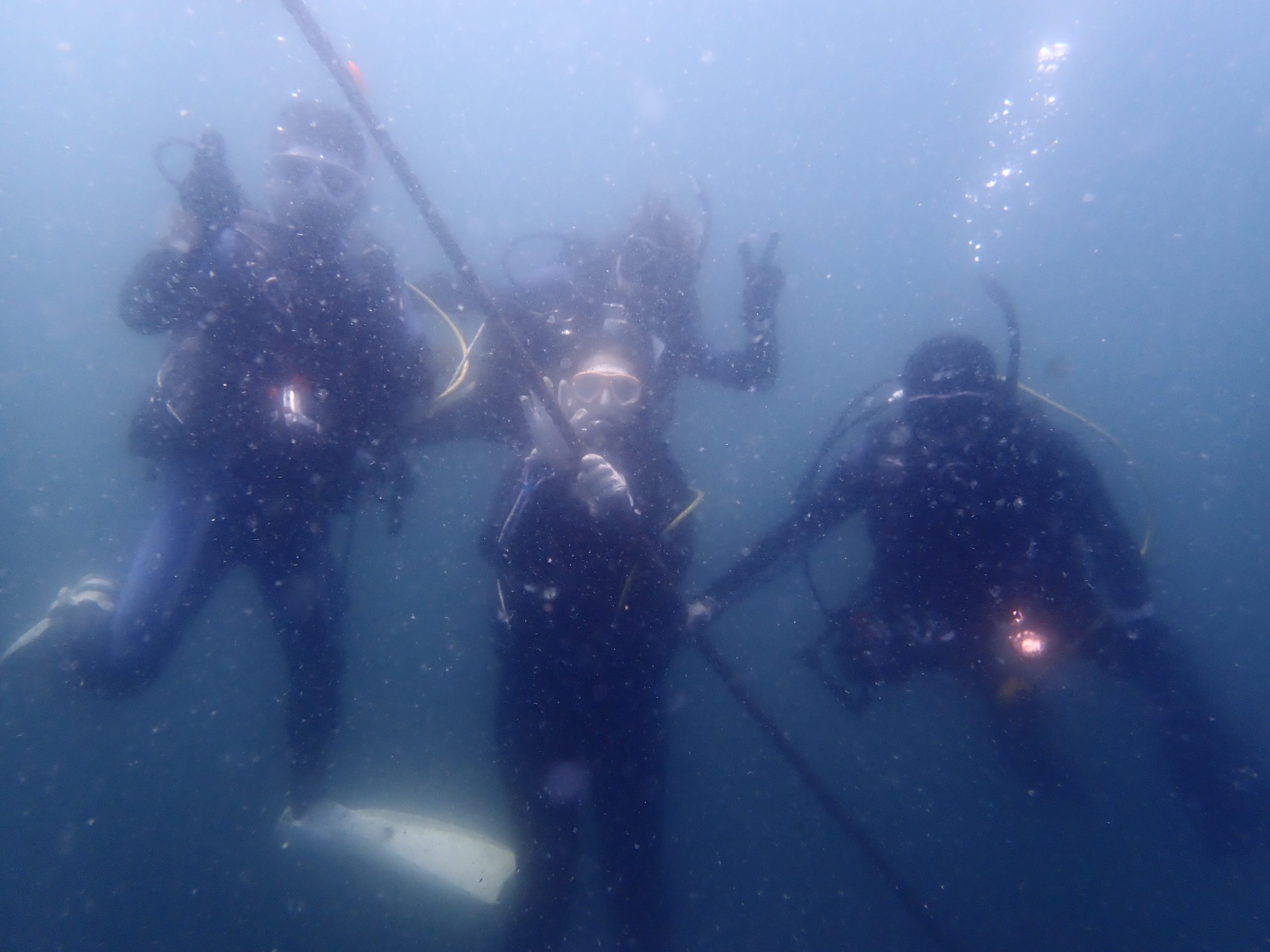 16日(土)の夕方に出発して串本へ行って来ました!そろそろお盆休みも終盤てとこかな?そして、数日前から青い海がどこかへ行ってしまったようですが、回復してるかも?と期待しながら向かいました。ですが、相変わらずドンヨリな水中・・・なので、集合写真もぼわーっとしてます。笑。魚はいっぱい居たんですけどねー。