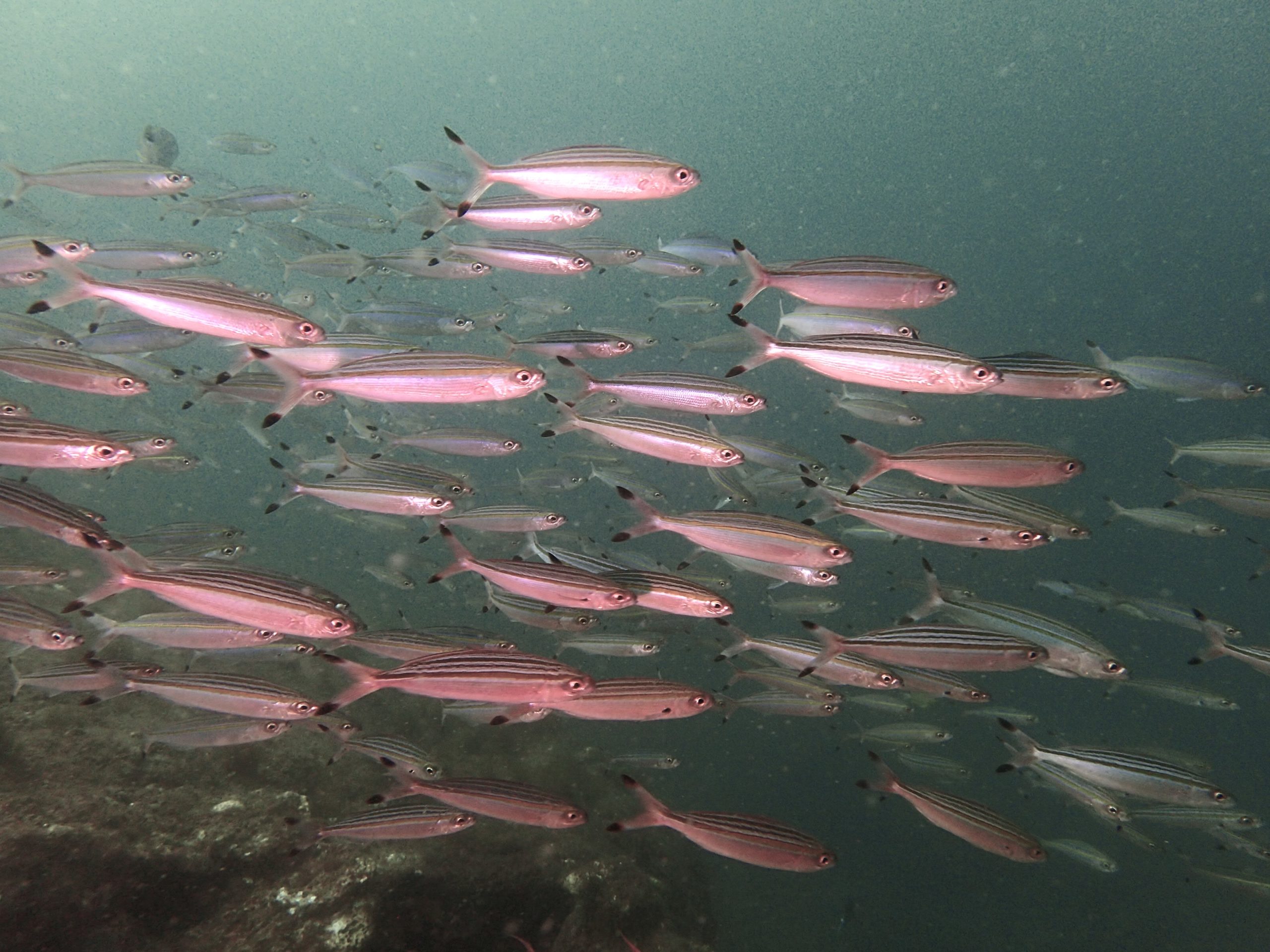 メジナの大群。透明度が3mくらいだったので、よ~く見るとめっちゃ群れててビックリ!!