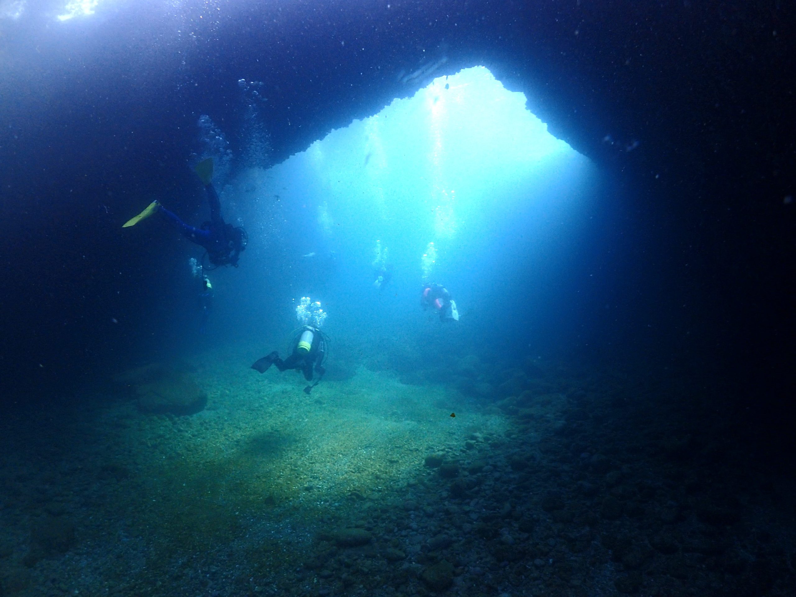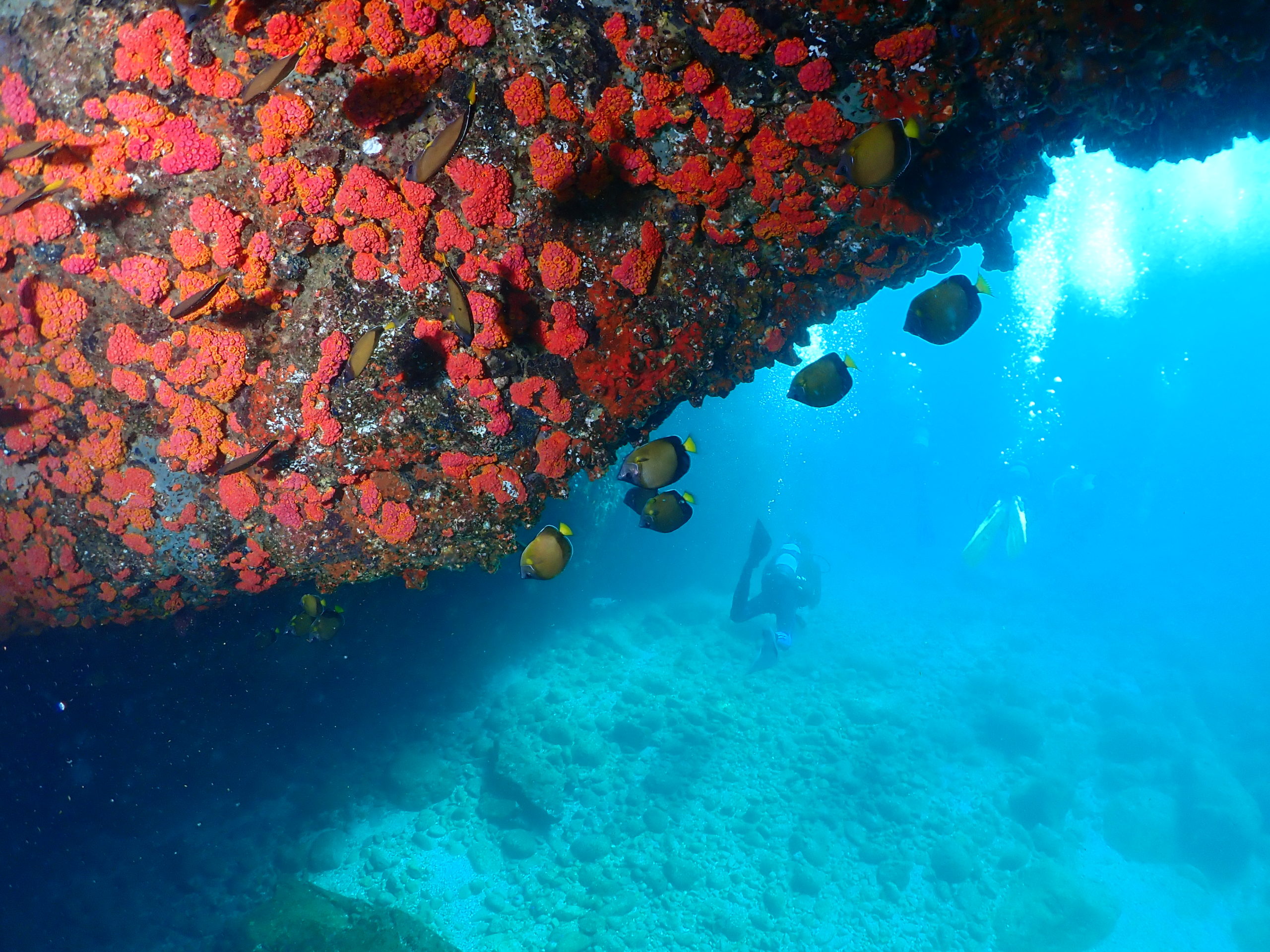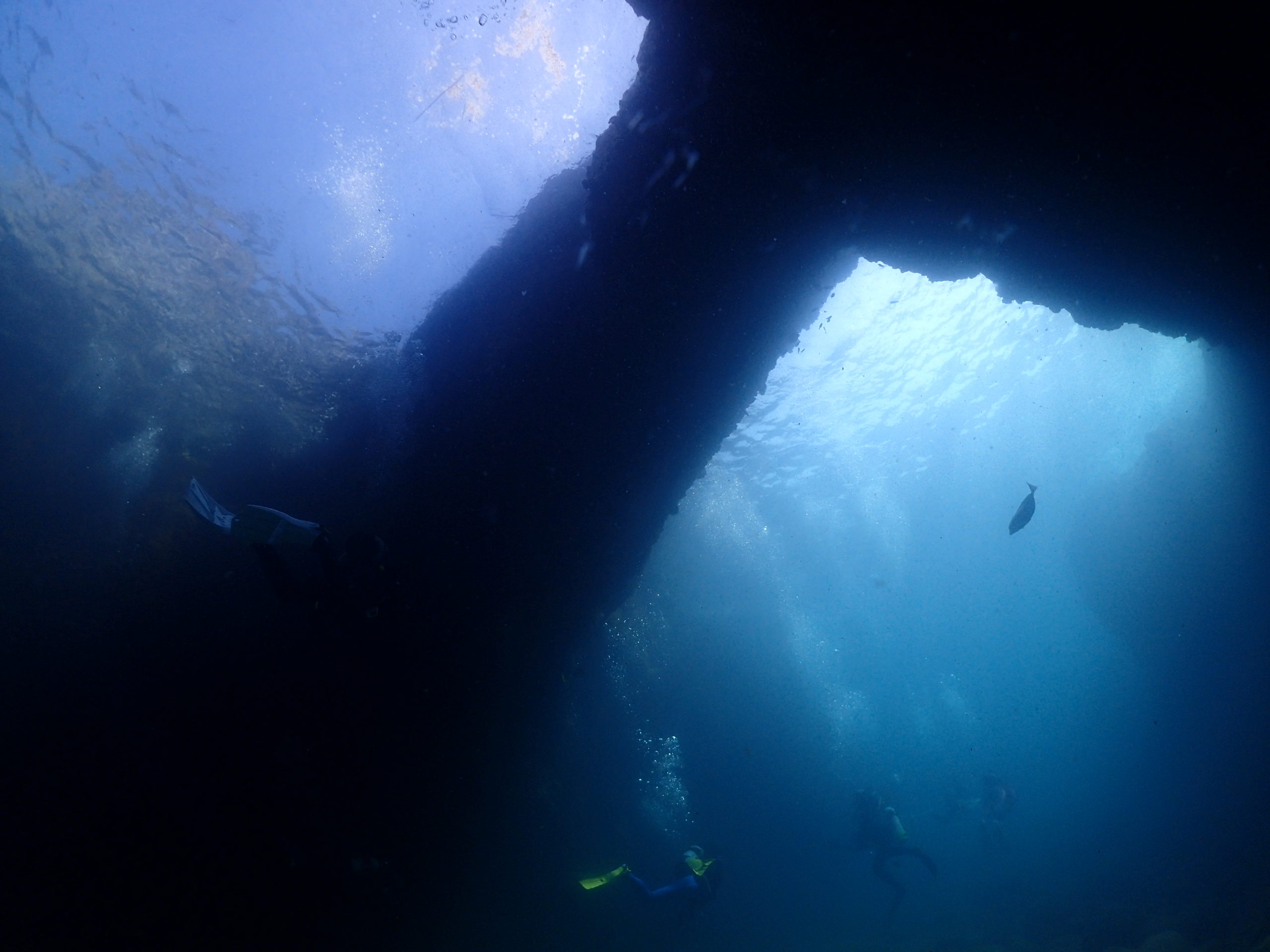 翌日は見老津へ!!期間限定ポイント、洞窟「ガマ」と「アーチ」へ♬休憩場所は漁協を借りています。今年も台風の影響もなく無事に潜ることが出来てよかったです。まずは「アーチ」へgo!!