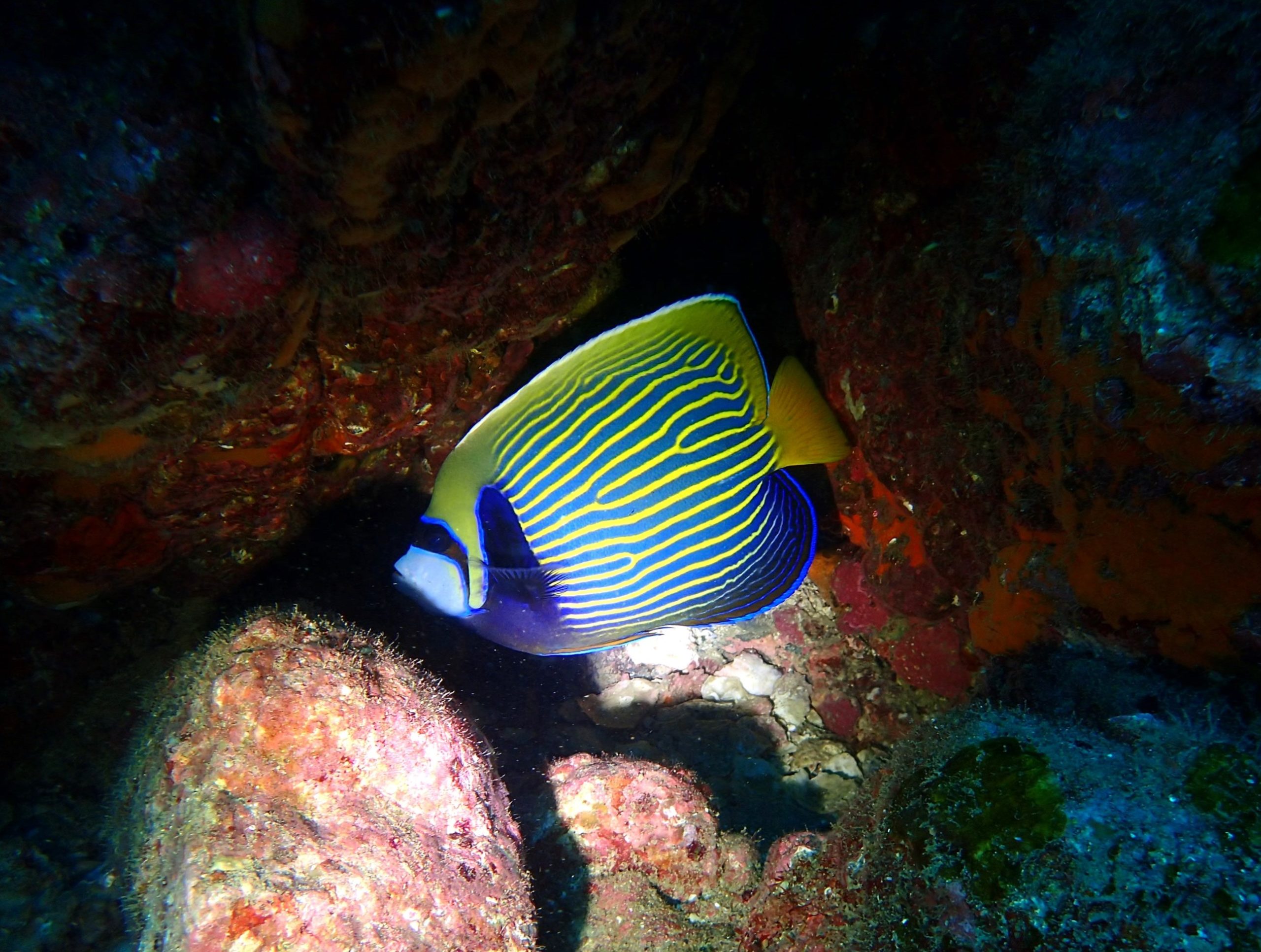 翌日は全員でボートダイブへ!!お天気も晴れになってよかったです♬ 最近、よく見かけるタテジマキンチャクダイの成魚。キレイですなぁ~。