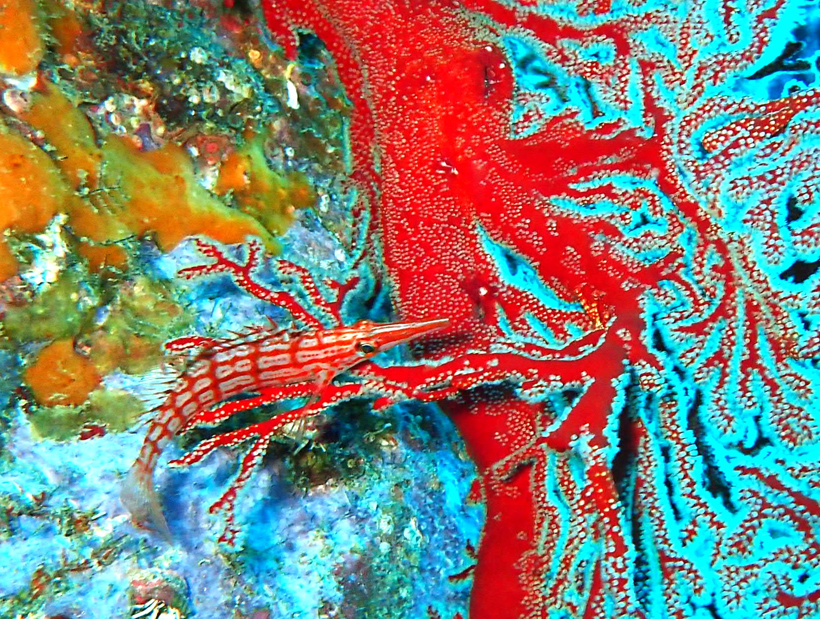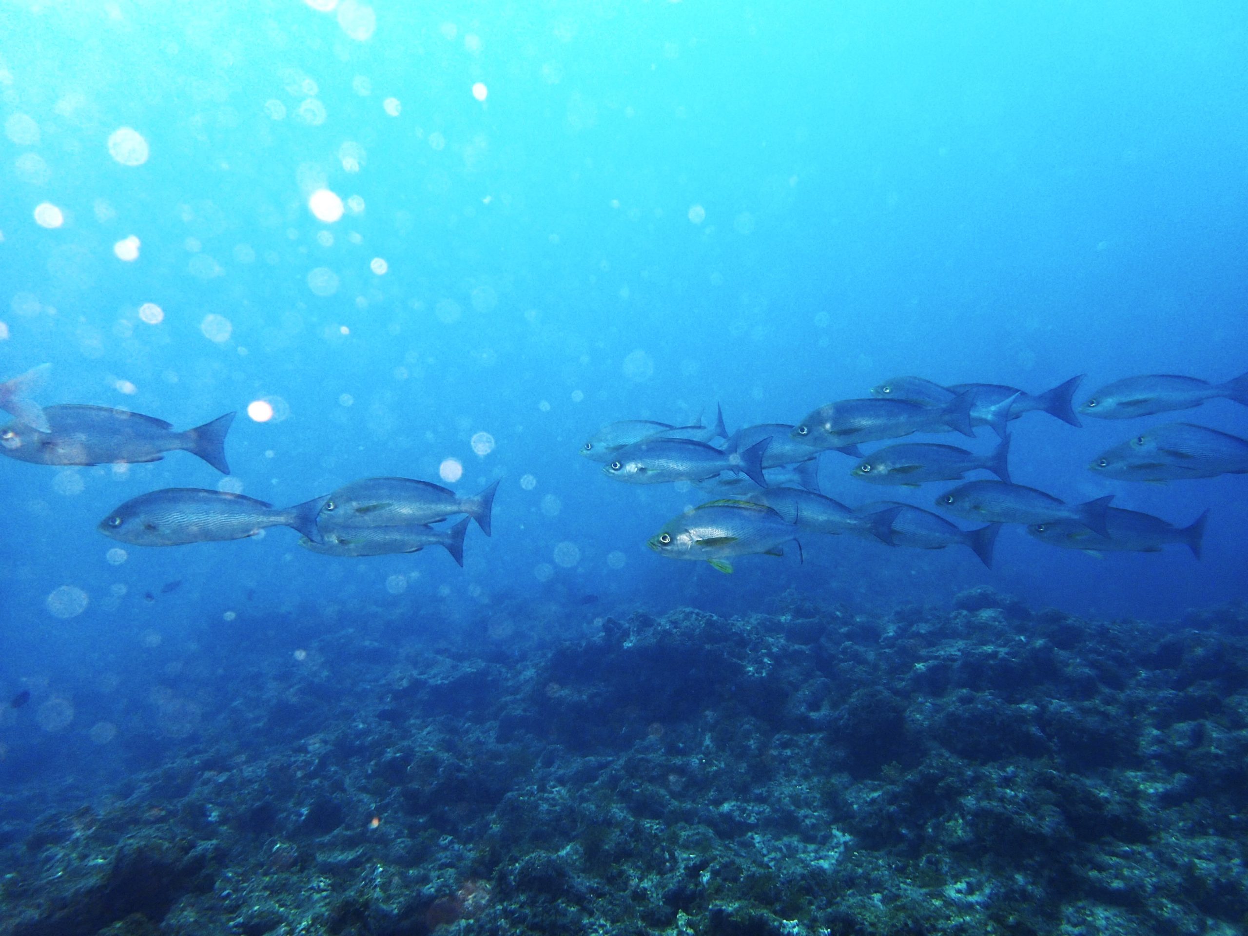セナキルリスズメダイ、キンギョハナダイ、アオウミガメ、ハタタテハゼ、ヘラヤガラ、キビナゴ大群、イサキ、クダゴンベ