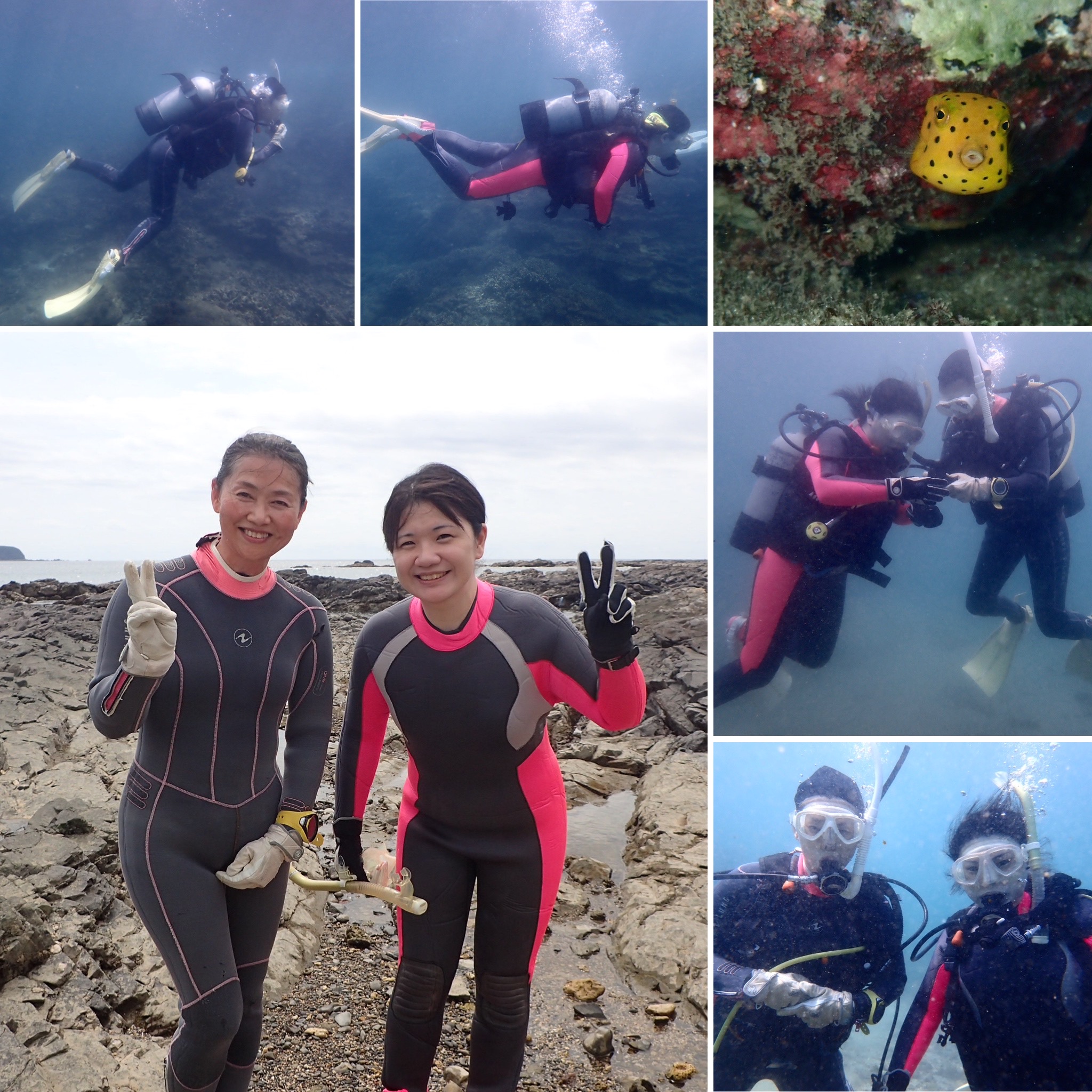 オープンウォーターコースでご参加のKさんとHさん。頑張りましたね~!!かわいいミナミハコフグ幼魚にも会えましたね!!