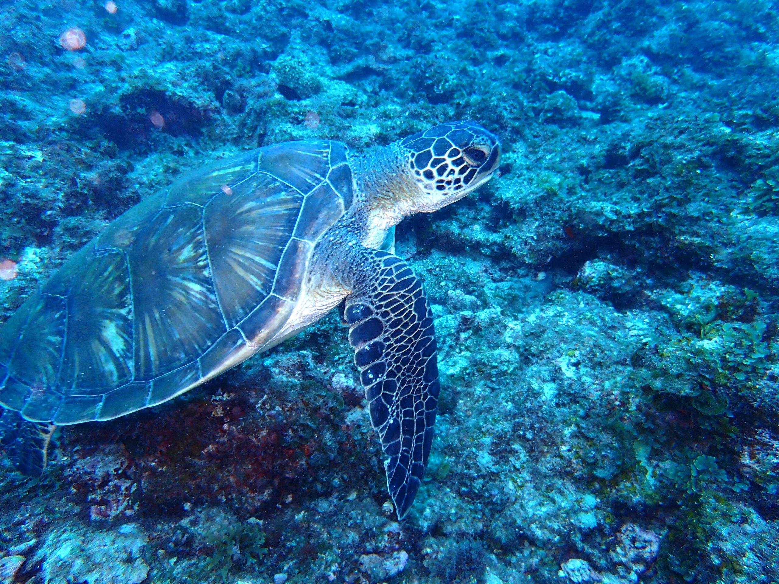ファンダイバーさんたちは初日からアオウミガメに遭遇~!!(ボートポイントです)最近、よく会えます♬