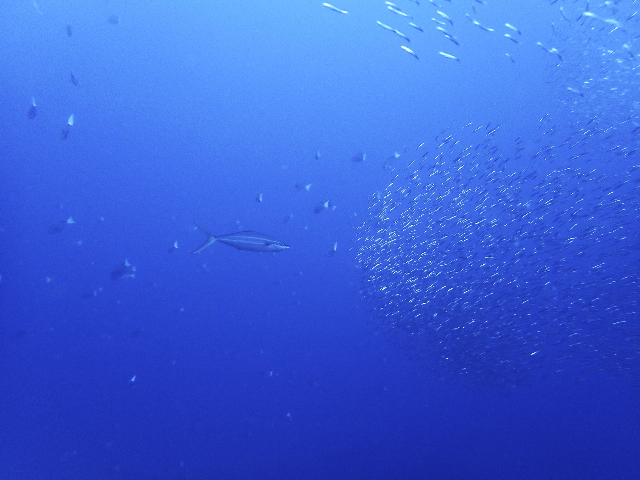 キビナゴ大群、ツムブリ、チンアナゴ、ヒレナガネジリンボウ、ホタテツノハゼ、アザハタ、ユカタハタ、タカサゴ