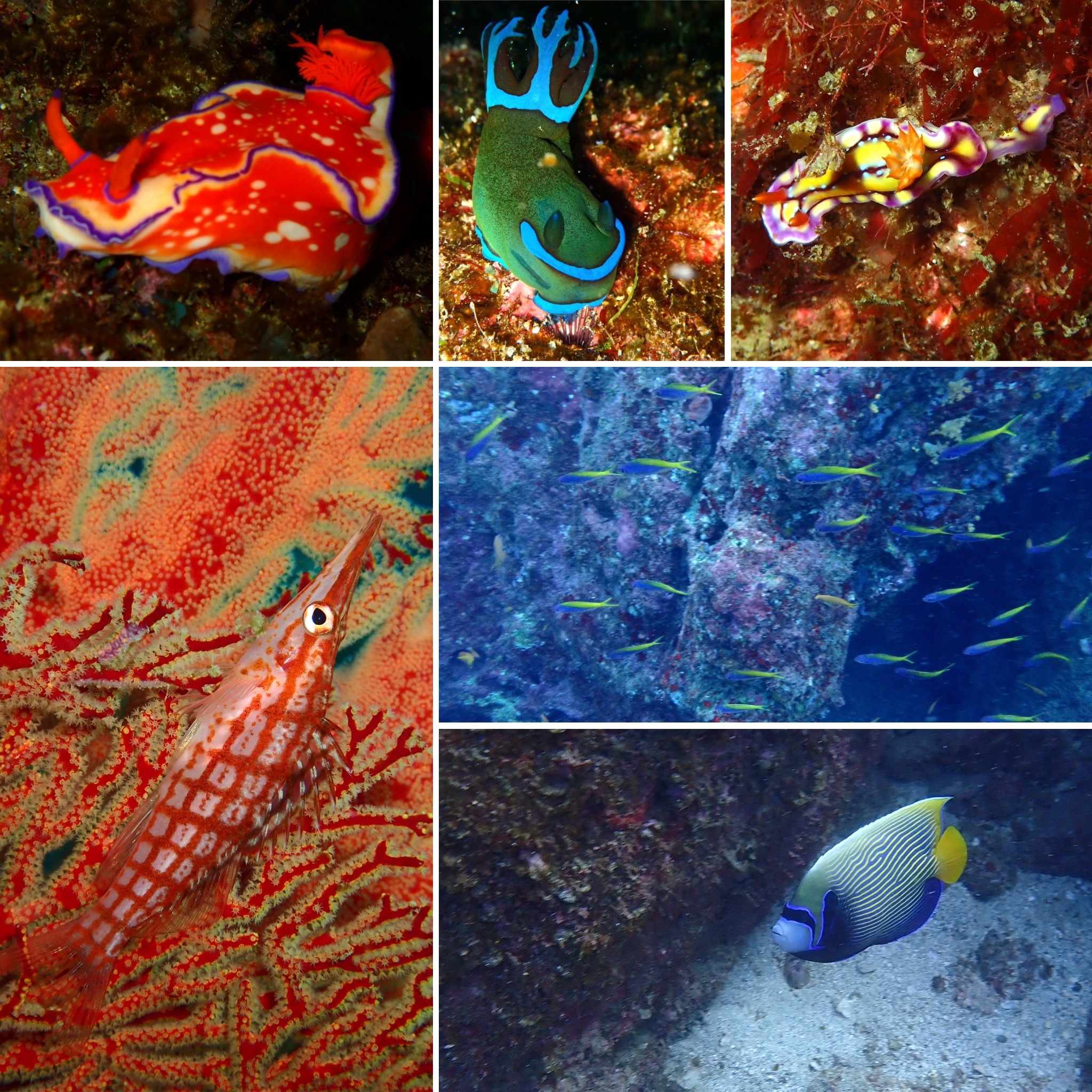 ホウライヒメジ群れ、ロクセンフエダイ群れ、クロホシフエダイ群れ、クダゴンベ、クリアクリーナーシュリンプ、ヘラヤガラ、イセエビ、イスズミ、アオウミウシ、ヒプセラドーリスクラカトア