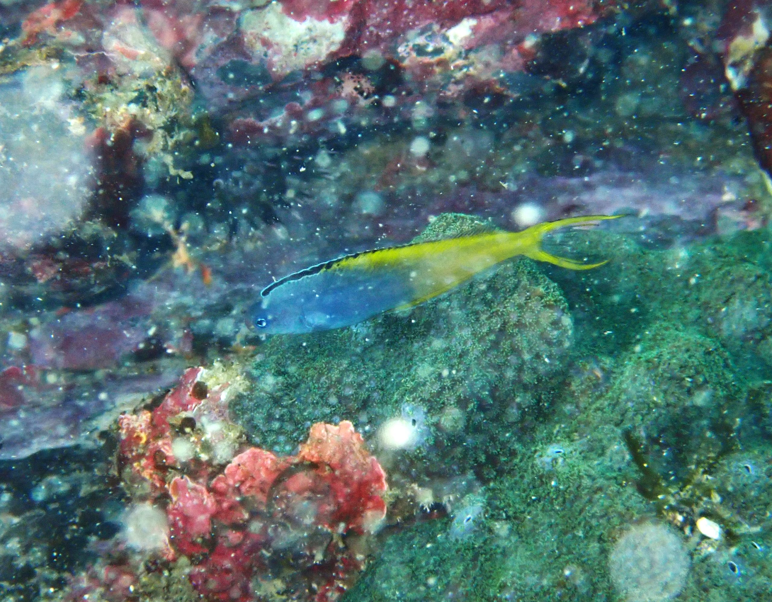 そんなビーチにイナセギンポ!!珍しい!(・・・と思う。笑)よく似た魚でオウゴンニジギンポは串本でもたま~にみかけますが、こちらはお初でした!!写真ではあまり分かりませんが、なにげにタラコくちびるがかわいい魚です。